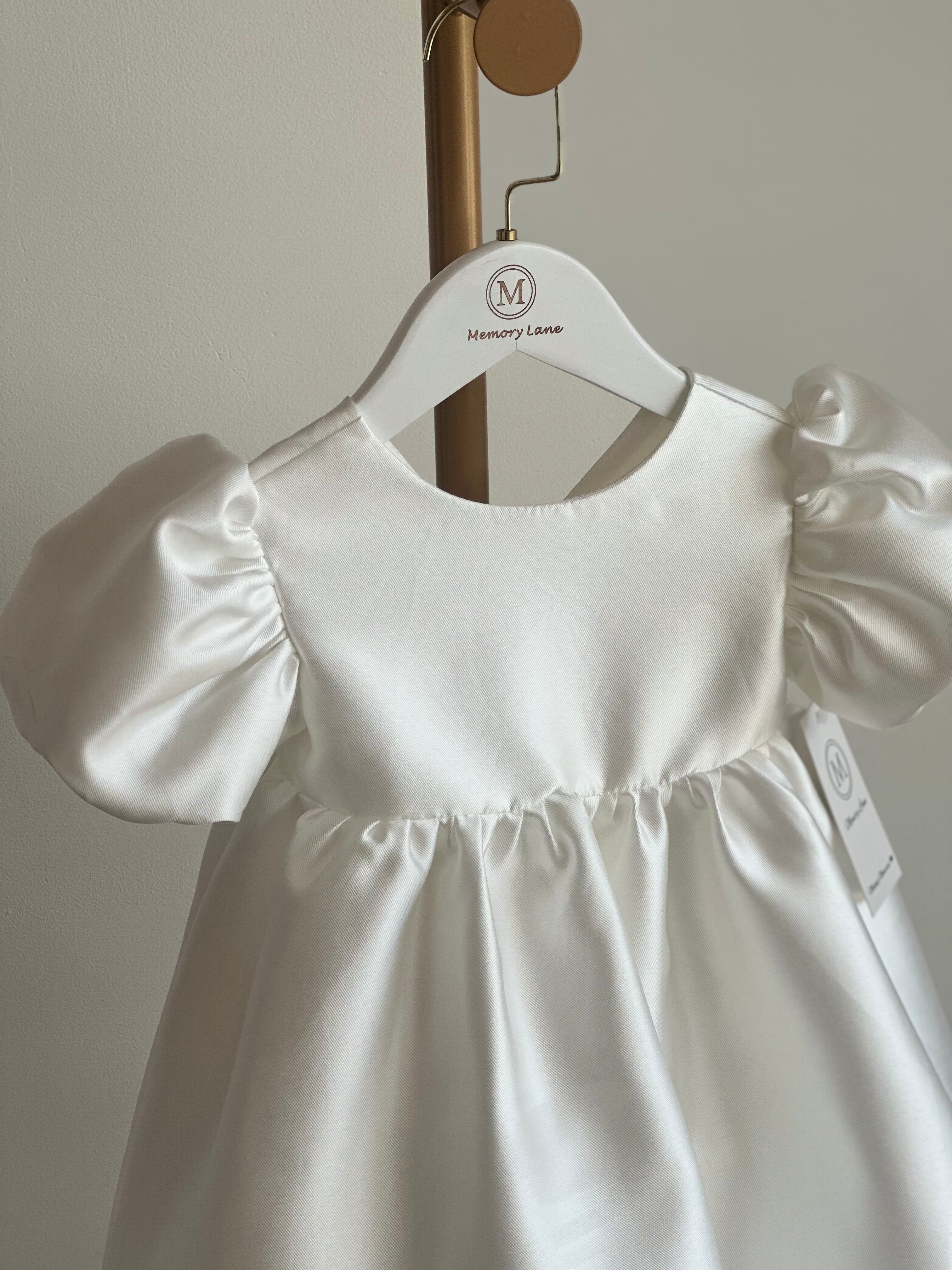 The Izzy Dress is expertly crafted from a luxurious Mikado blend, featuring a half-circular silhouette that delivers graceful movement and elegant style. Adorned with delicate pearl buttons and a discreet zip, it offers a refined fit perfect for special occasions. This exclusive set includes a matching headband, providing a polished...